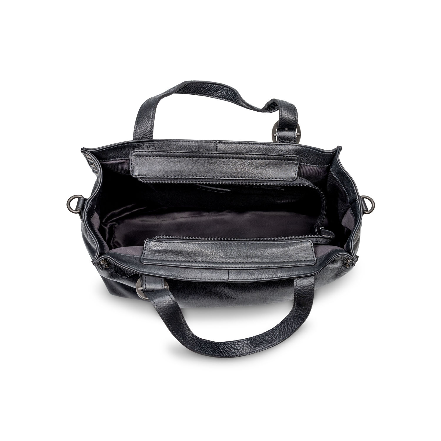 Binnenin vind je een praktische indeling met een ruim hoofdvak, extra ritsvak en steekvakken zodat je al je essentials overzichtelijk kunt meenemen.