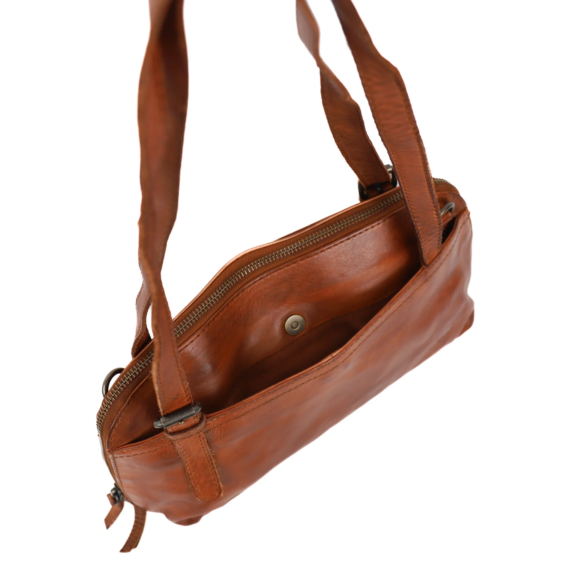'Daphne' is een klein handtasje uit de Cow-Lavato collectie van Bear Design. Dit tasje is door de afneembare schouderband ook te dragen als schoudertasje. Deze baguette bag is geheel te openen met de dubbele pullers, zodat je alles in een oogopslag overzichtelijk kunt zien.