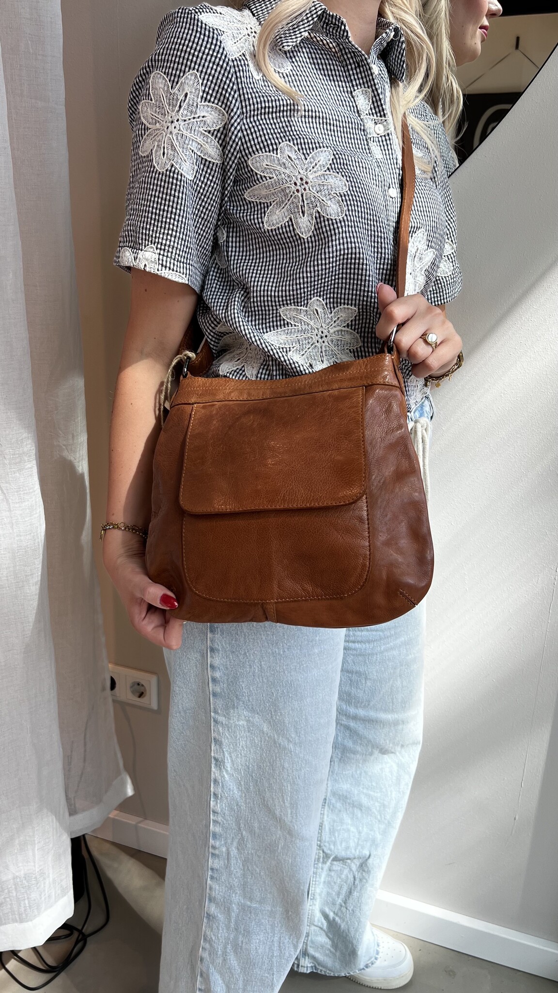 Schoudertas met voorvak Merle MJ2034 Cognac