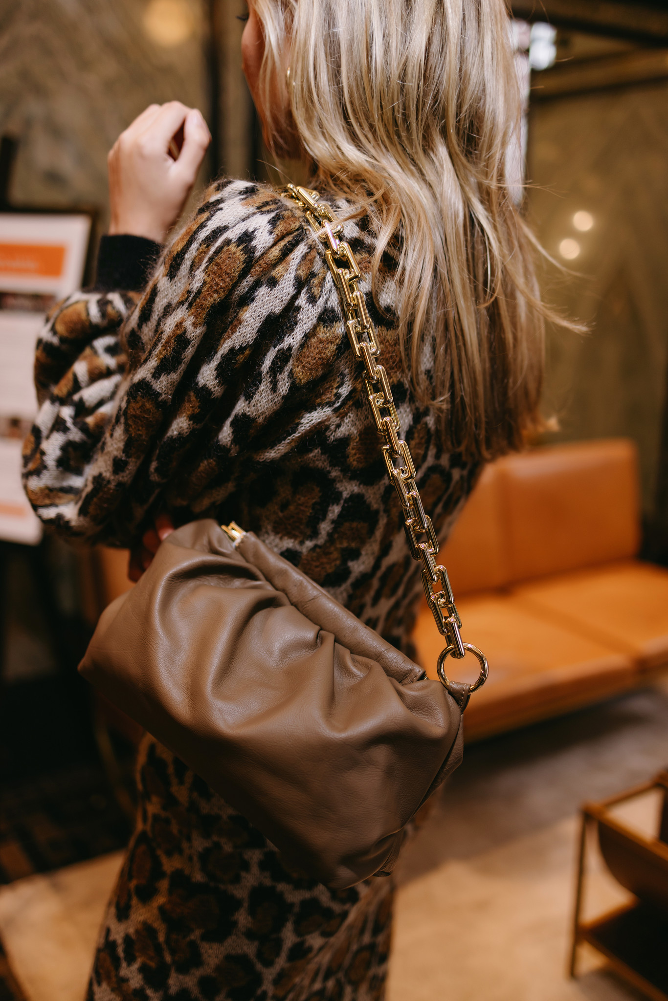De one of a kind van Baggyshop is een trendy tas die zeker op gaat vallen tijdens het kerstdiner. De tas heeft een mooie taupe kleur en is afgewerkt met gouden details. Door de plooien in het leer krijgt de tas een speelse uitstraling. De schoudertas is gevoerd en sluit d.m.v. een push- en pull sluiting. Verder wordt de tas wordt geleverd met een schouderhengsel in de vorm van een brede gouden schakelketting.