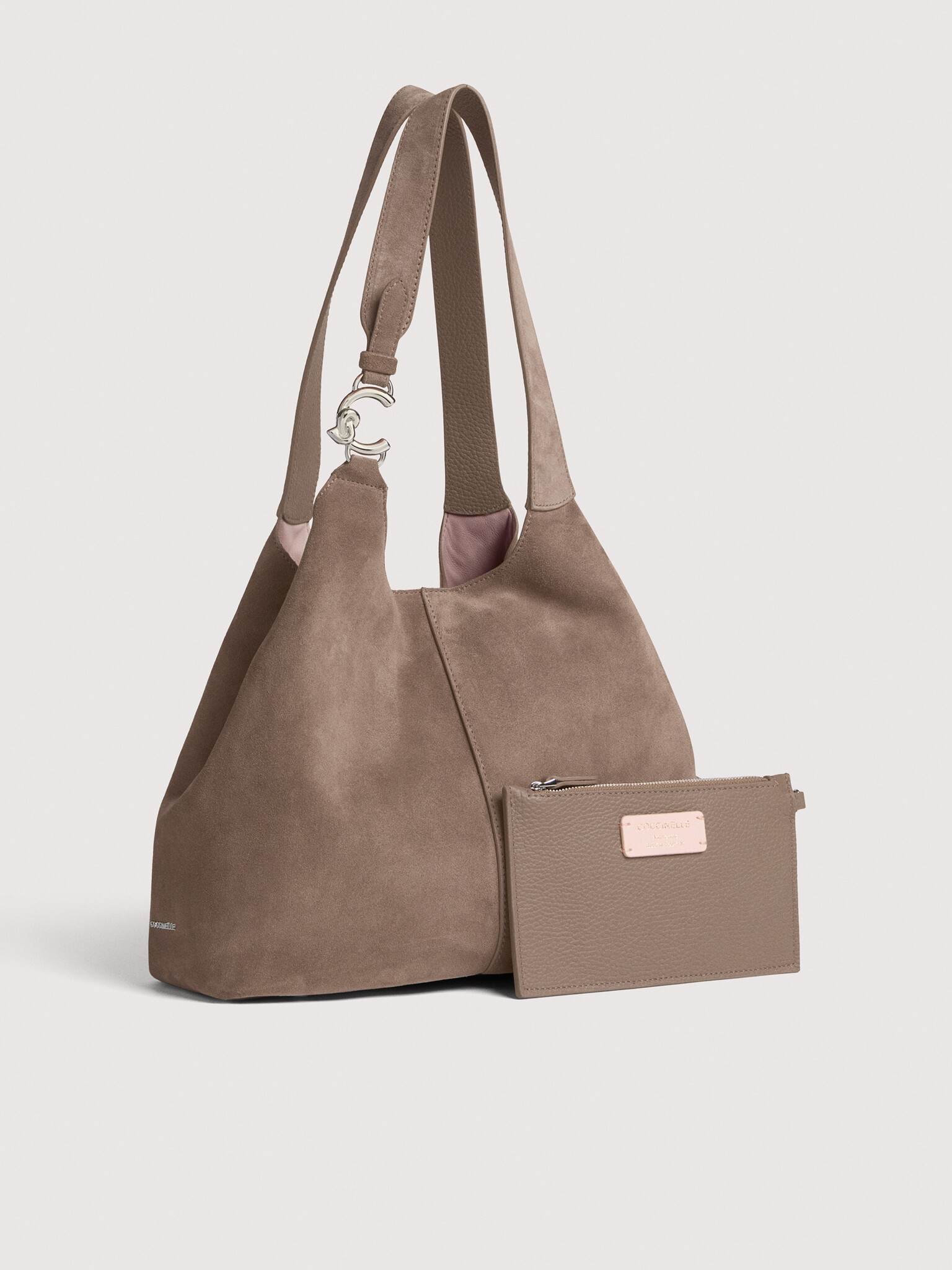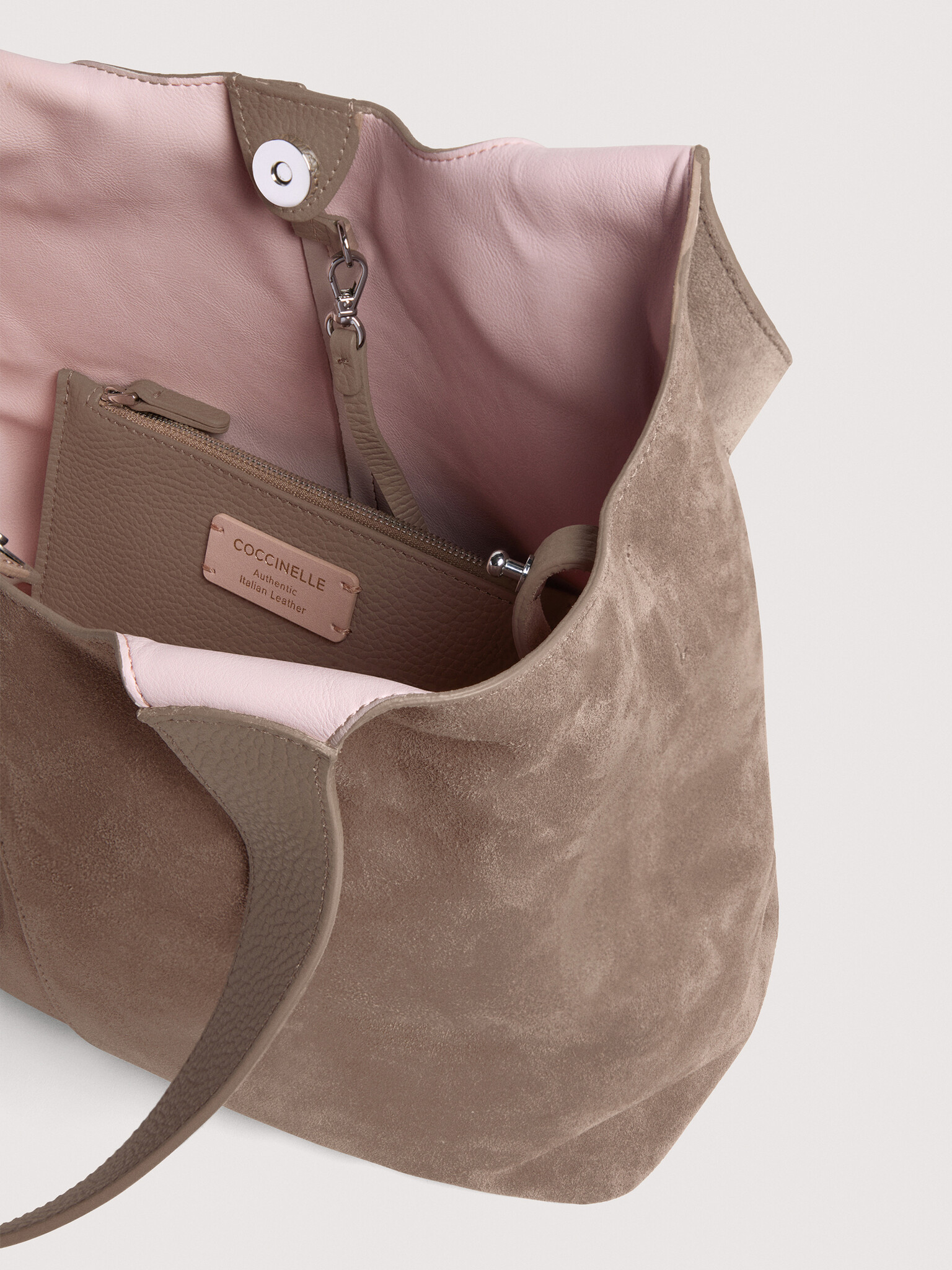 C-Easy schoudertas in suede van Coccinelle is een soepele schoudertas met binnentasje.