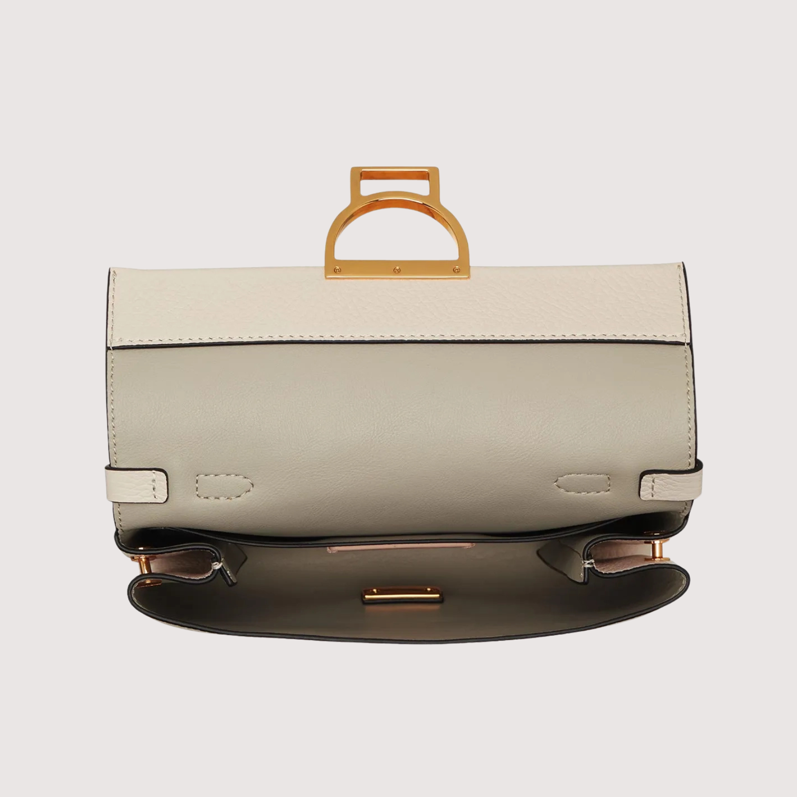 De Arlettis-tas heeft een compartiment met de iconische metalen gesp op de voorkant en stijlvolle schouderband met logo bedrukt. Veelzijdig voor dagelijks gebruik, kan in de hand worden gedragen dankzij de afneembare handgreep, of crossbody. Draag de tas ook op de schouder dankzij de verstelbare riem. Dit model is gemaakt van leer. Dit is een zeer stevig, gemakkelijk schoon te maken leer, waardoor het ideaal is voor dagelijks gebruik.