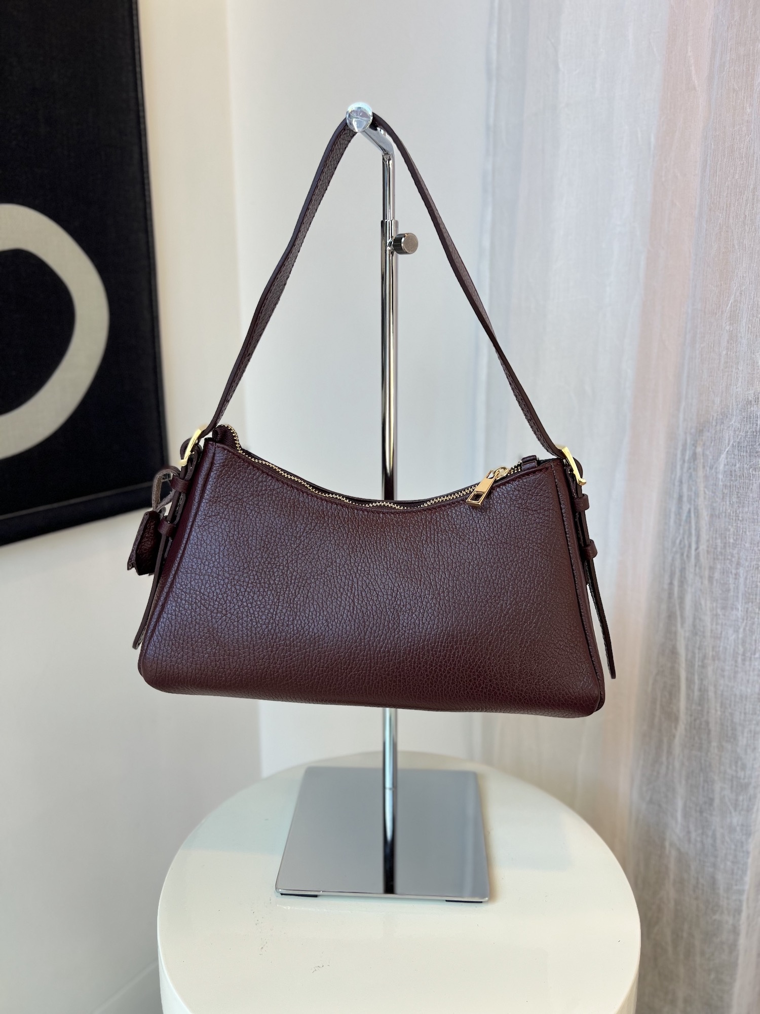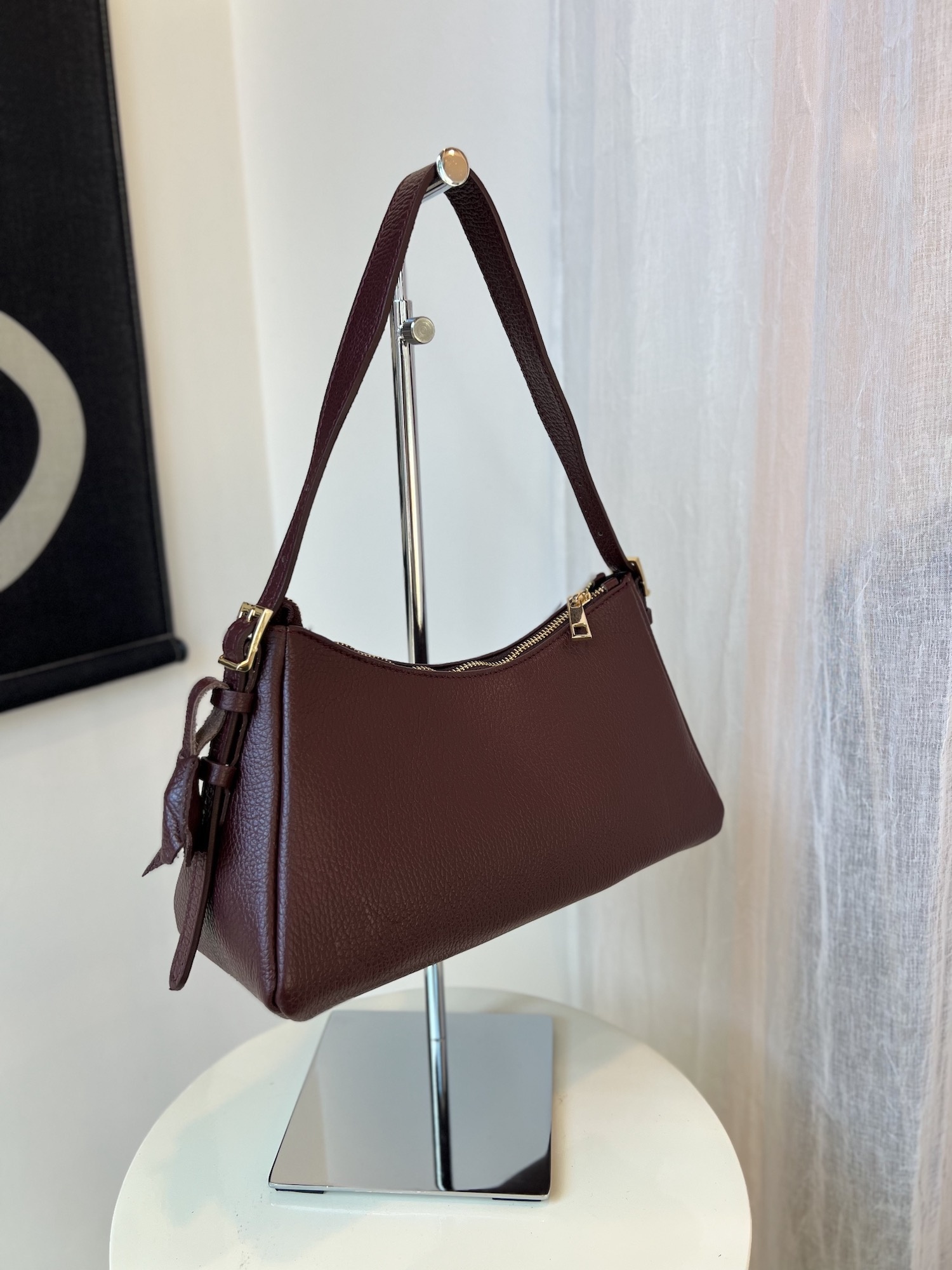 Strakke schoudertas met ritssluiting.