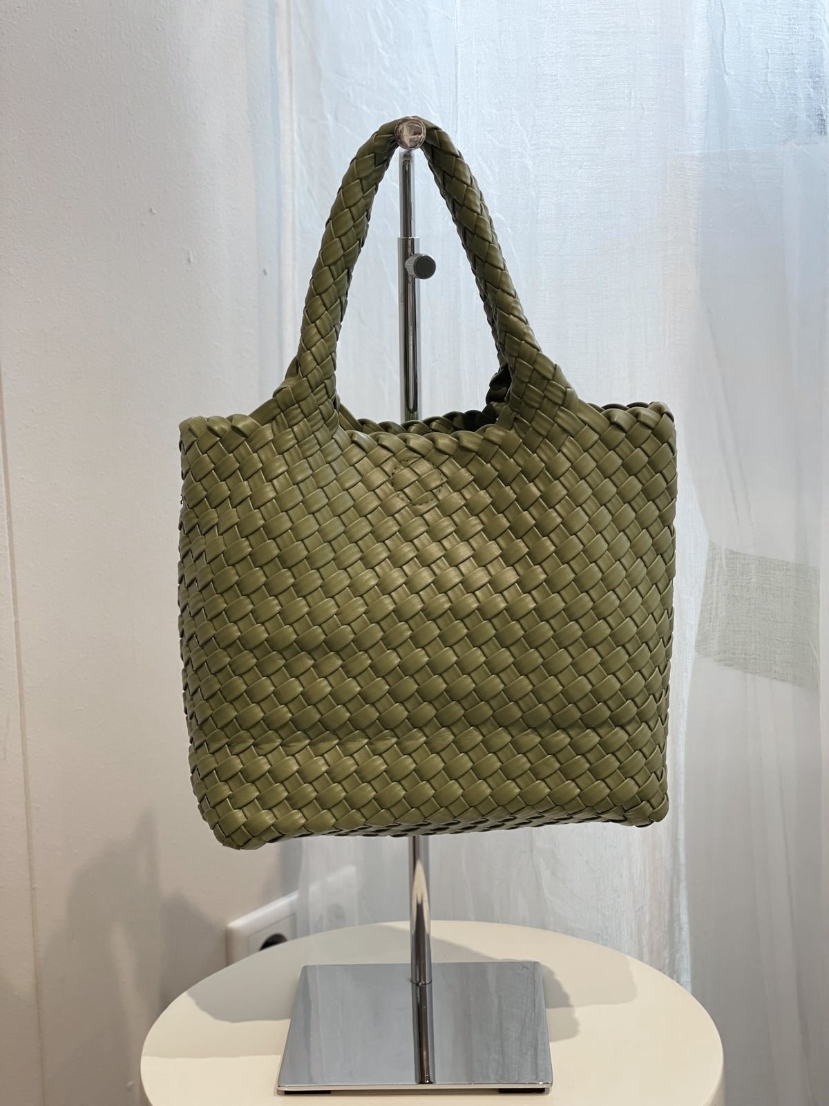 Ellis is een leuk handtasje in een gevlochten patroon. Deze kleine shopper heeft een binnen tas met rits en een magneetsluiting.