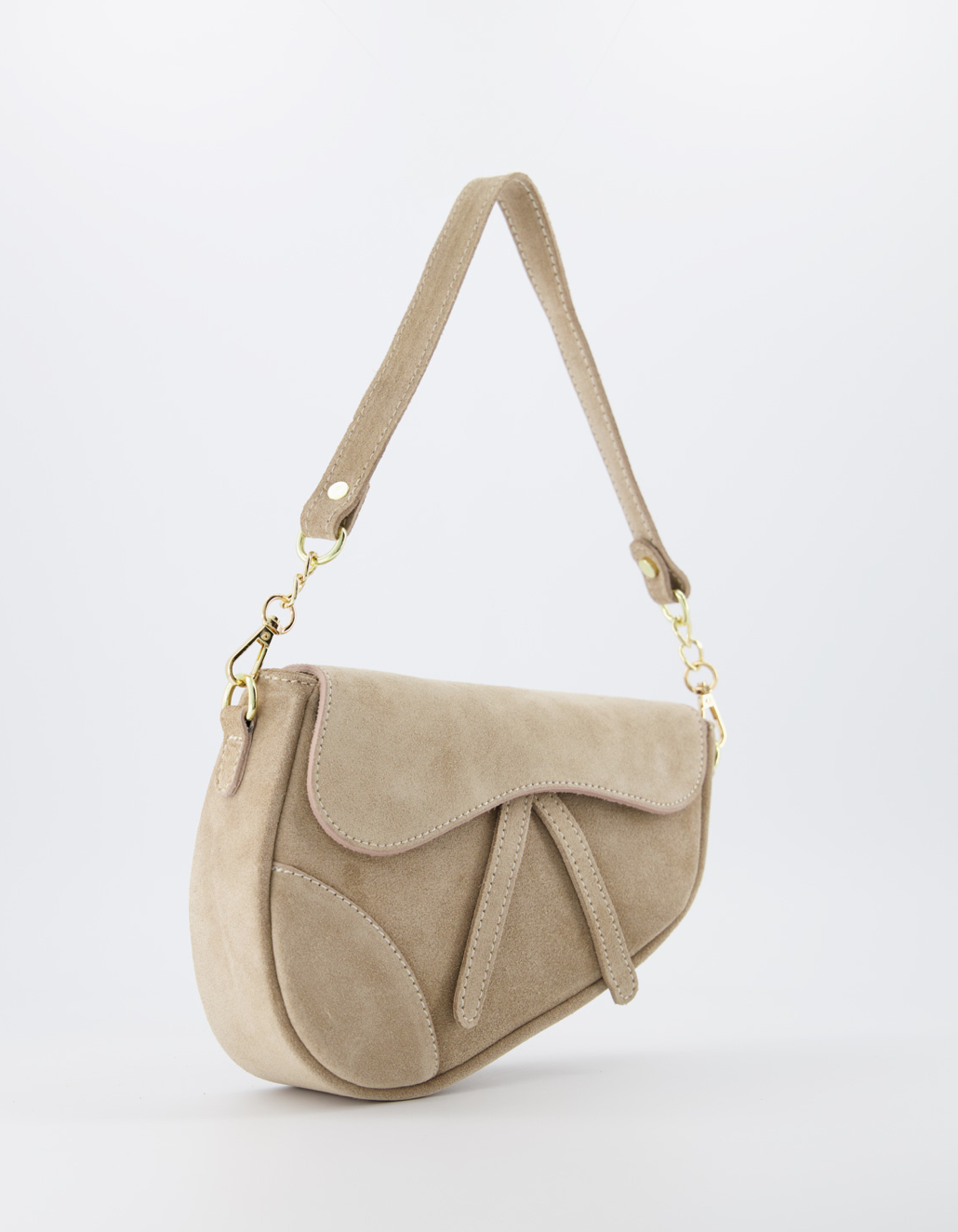 Een niet te missen trend; de saddle bag.De tas in de vorm van een zadel. Draag hem kort onder je arm of crossbody met de lange schouderband. Deze is in lengte verstelbaar. De tas sluit door middel van een flap met magneetsluiting. Onder deze flap zit ook nog een ritssluiting voor extra veiligheid.
