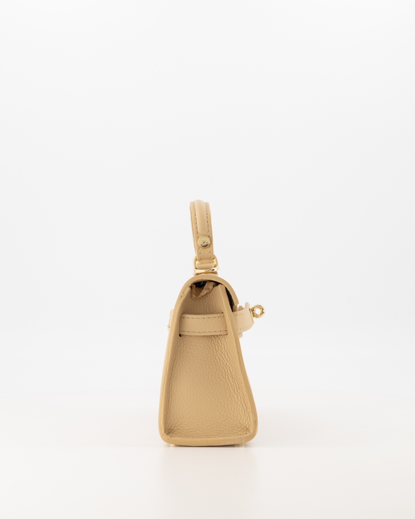 Het tasje heeft gouden details en is gemaakt van echt leer.