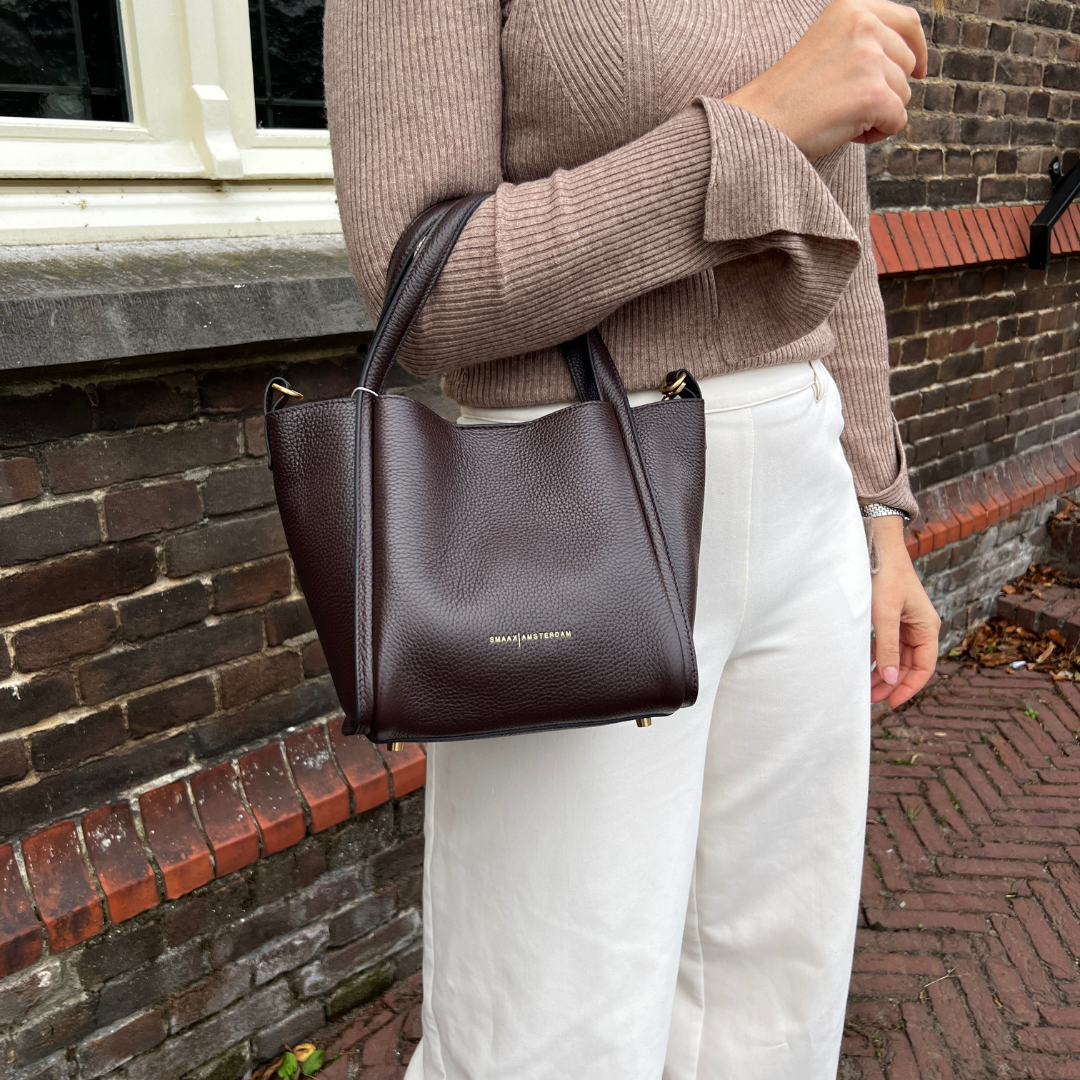 De JANE handtas van Smaak Amsterdam is geschikt voor diverse gelegenheden, van formele evenementen tot dagelijks gebruik, en voegt een vleugje verfijning toe aan elke outfit.