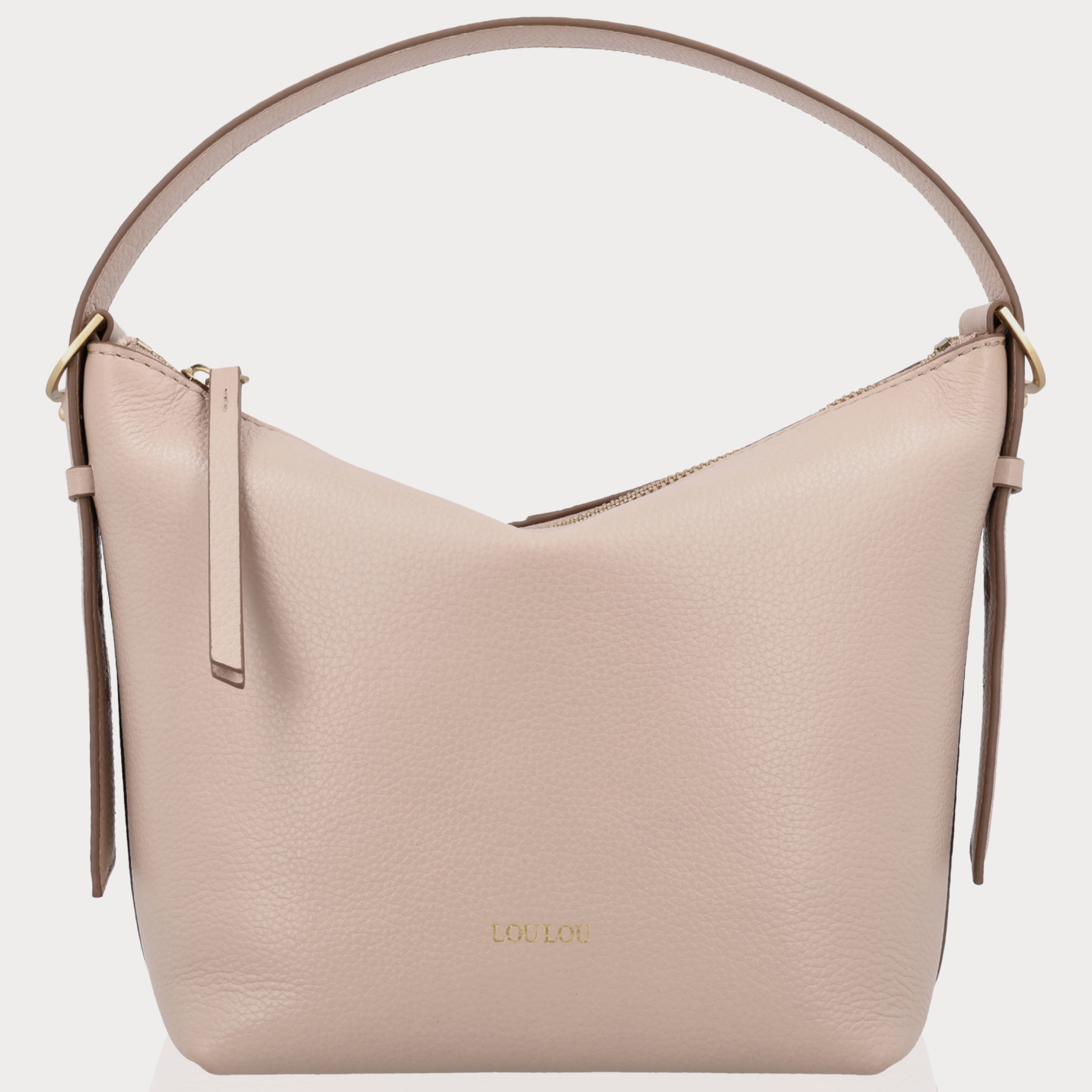 De LOIS Donkerblauw combineert stijl en functionaliteit in een handzaam ontwerp. Deze hobo/crossbody tas in donkerblauwe tint is gemaakt van grain leer, met subtiele gouden hardware en een roze voering. Draag 'm los als schoudertas of bevestig de extra band voor crossbody gebruik.