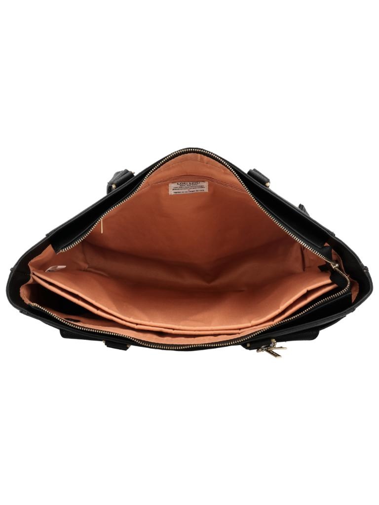 De CELINE Black Gold is een elegante laptoptas van zwart grain leer met verfijnde goudkleurige hardware. Deze tas is ontworpen voor vrouwen die stijl en functionaliteit willen combineren. Het ruime hoofdvak sluit met een rits en biedt plek aan een 15.6 inch laptop, een tablet en dagelijkse benodigdheden. Dankzij de overzichtelijke indeling, meerdere vakken en afneembare, verstelbare schouderband is dit de ideale tas voor werk of studie.