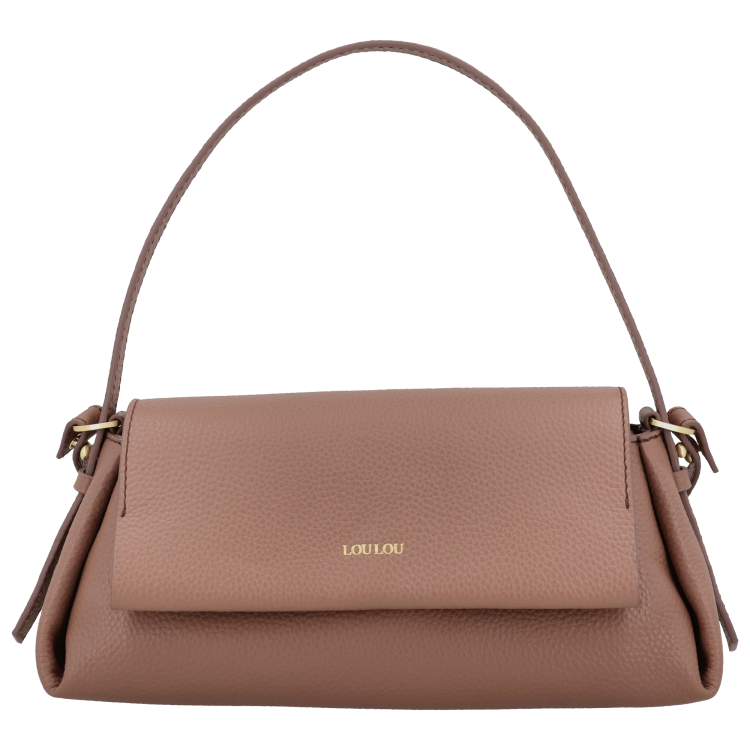ISA Mocha Mousse Gold – verfijnde overslagtas in zacht roze leer