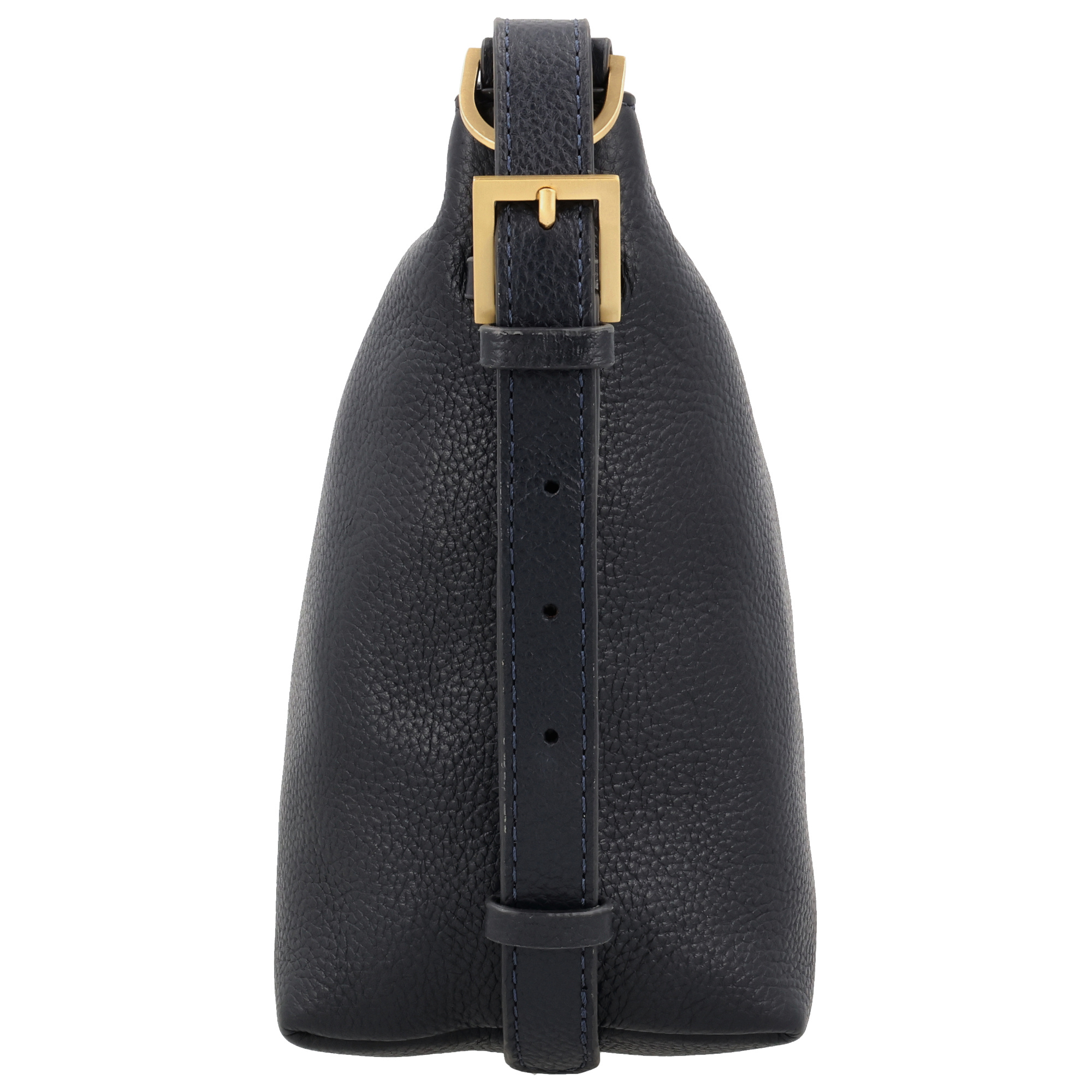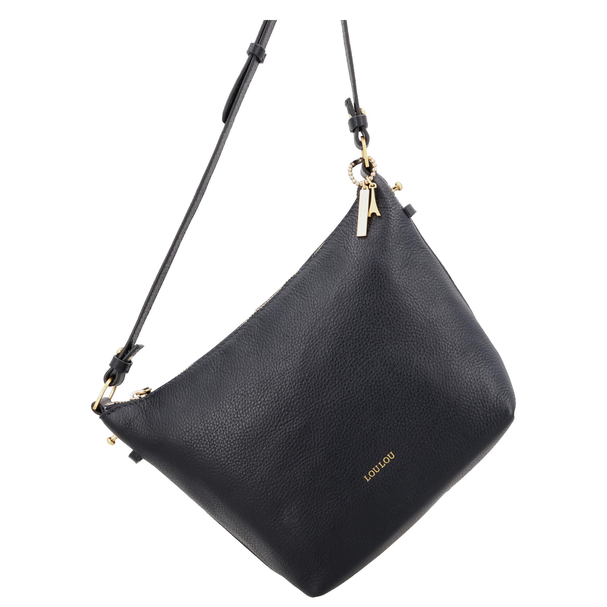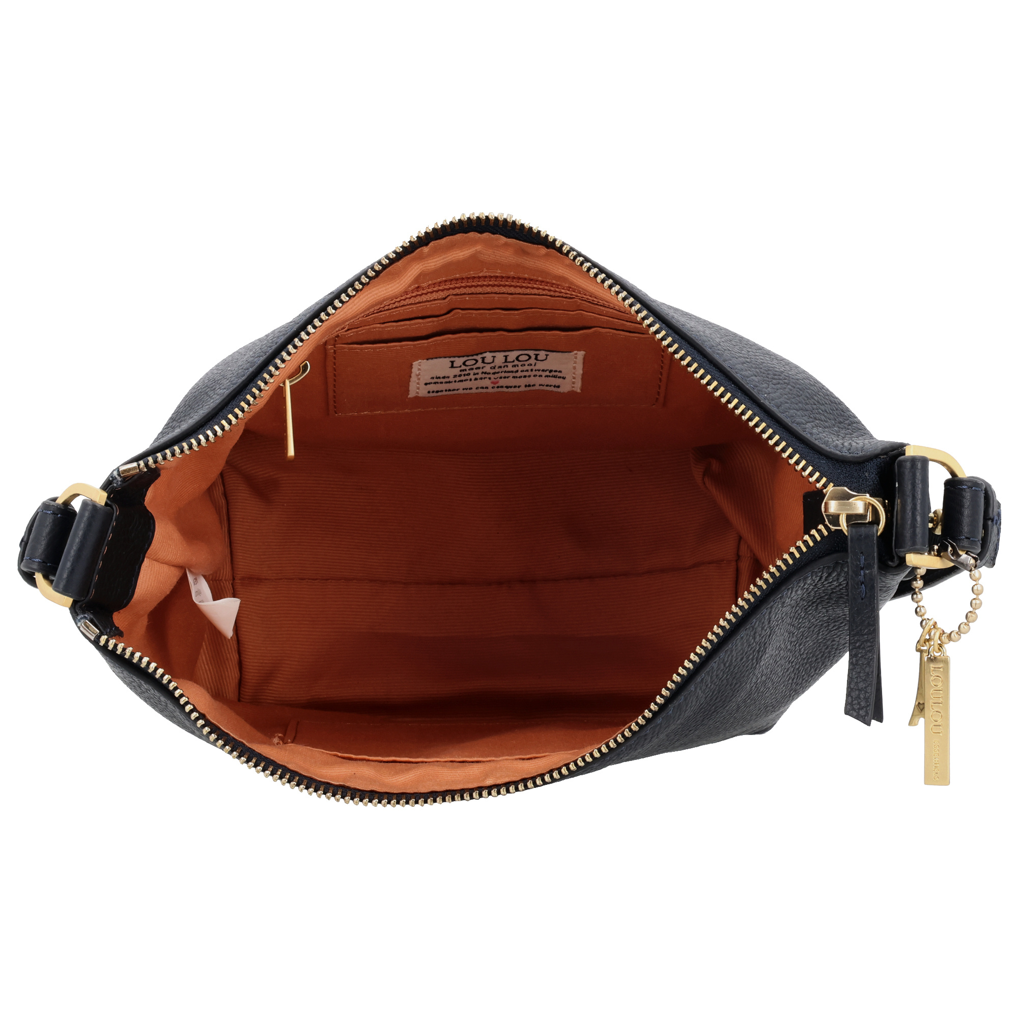 De LOIS Donkerblauw combineert stijl en functionaliteit in een handzaam ontwerp. Deze hobo/crossbody tas in donkerblauwe tint is gemaakt van grain leer, met subtiele gouden hardware en een roze voering. Draag 'm los als schoudertas of bevestig de extra band voor crossbody gebruik.