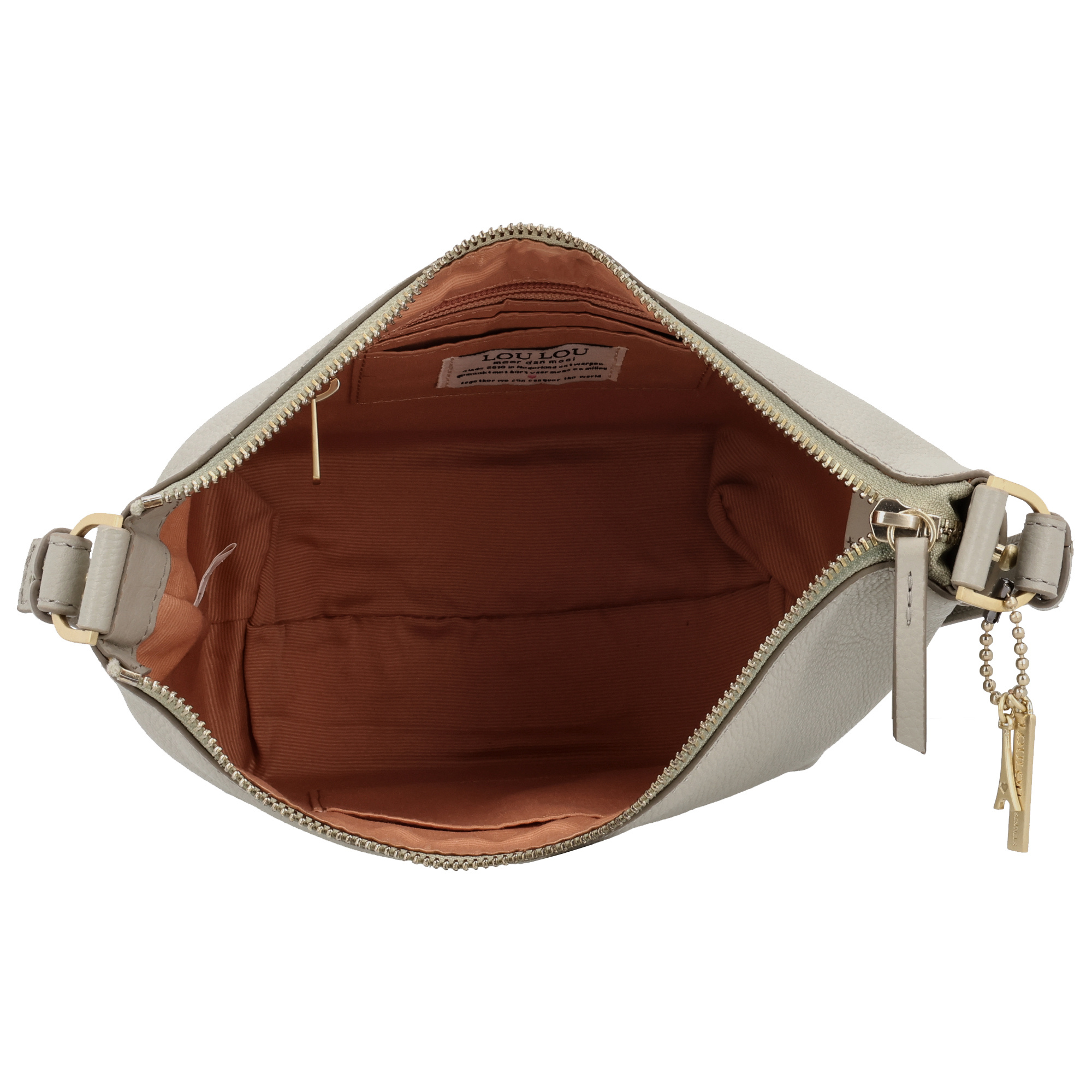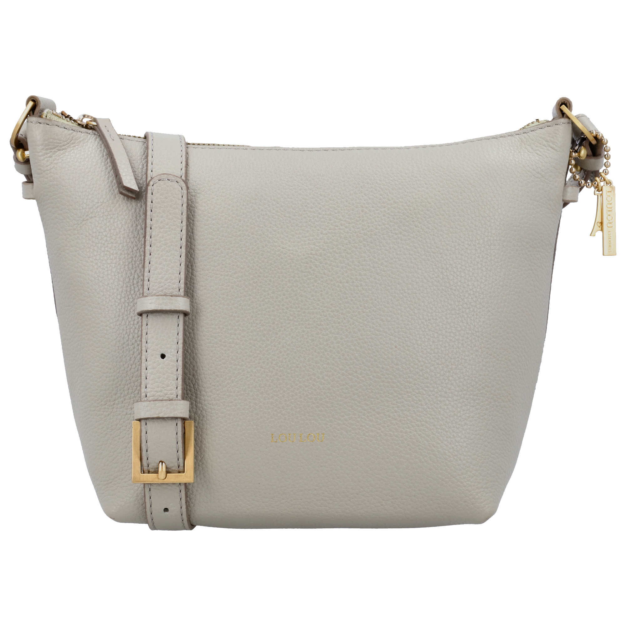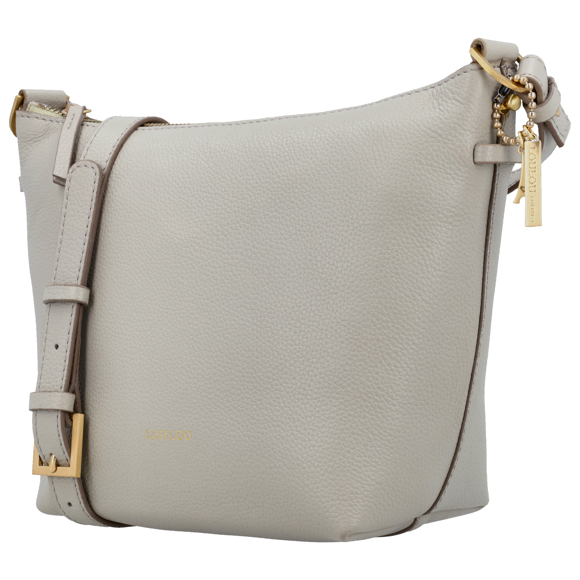 De LOIS Fog combineert stijl en functionaliteit in een handzaam ontwerp. Deze hobo/crossbody tas in grijs tint is gemaakt van grain leer, met subtiele gouden hardware en een roze voering. Draag 'm los als schoudertas of bevestig de extra band voor crossbody gebruik.