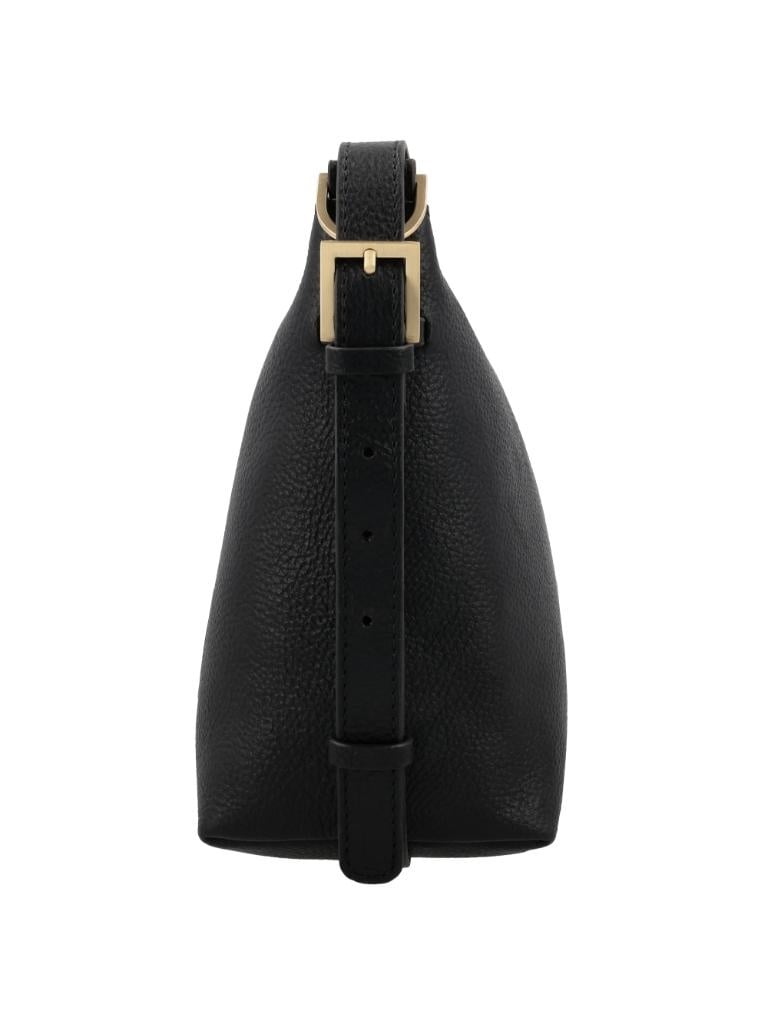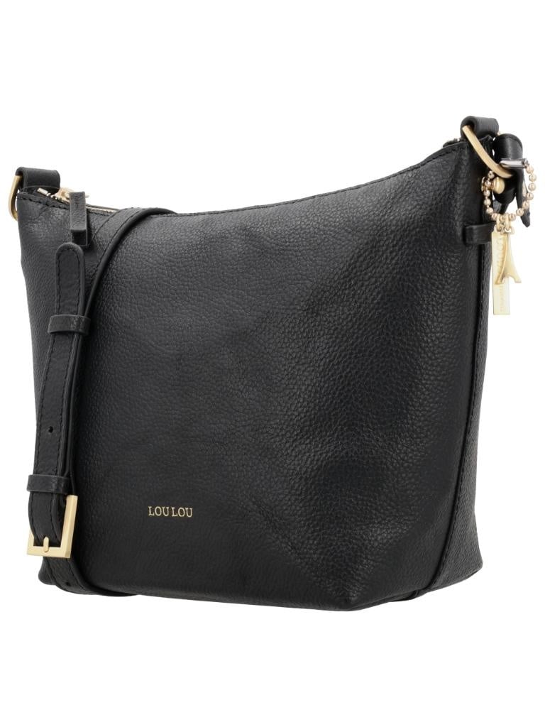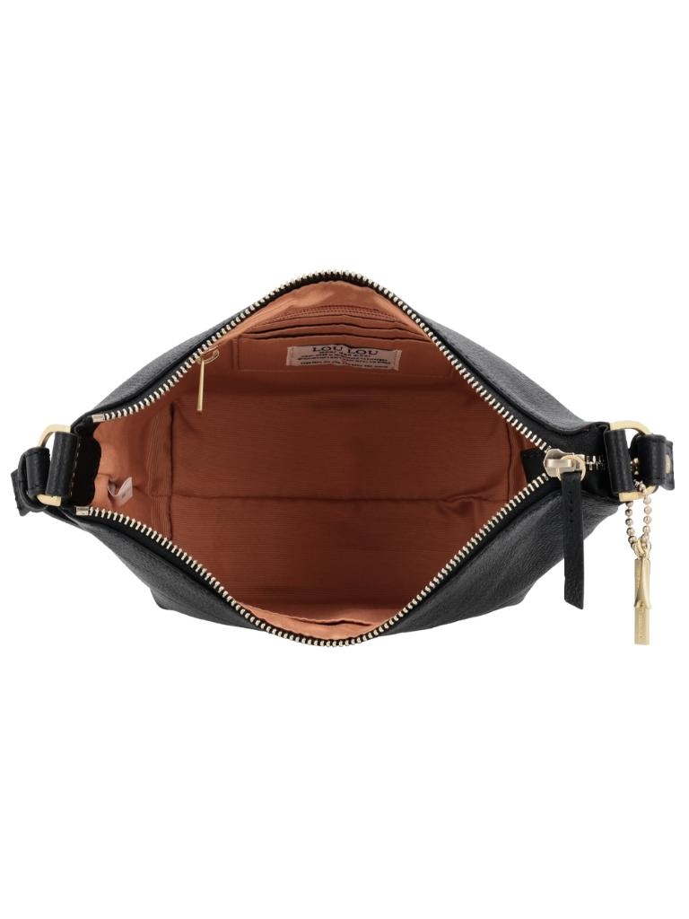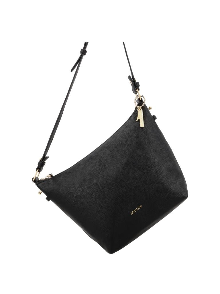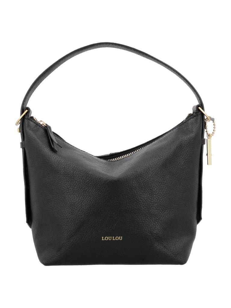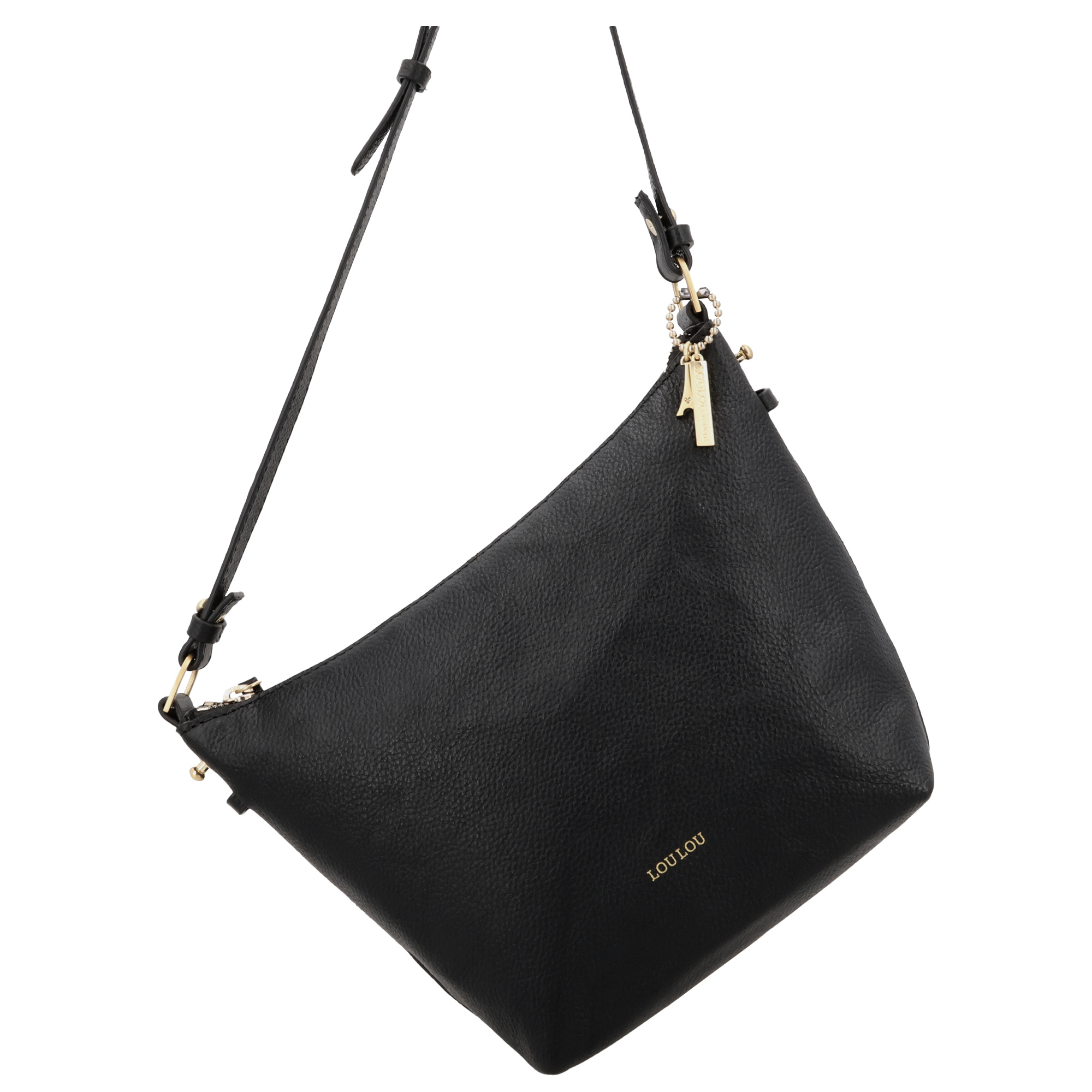 De LOIS zwart combineert stijl en functionaliteit in een handzaam ontwerp. Deze hobo/crossbody tas in het zwart is gemaakt van grain leer, met subtiele gouden hardware en een roze voering. Draag 'm los als schoudertas of bevestig de extra band voor crossbody gebruik.