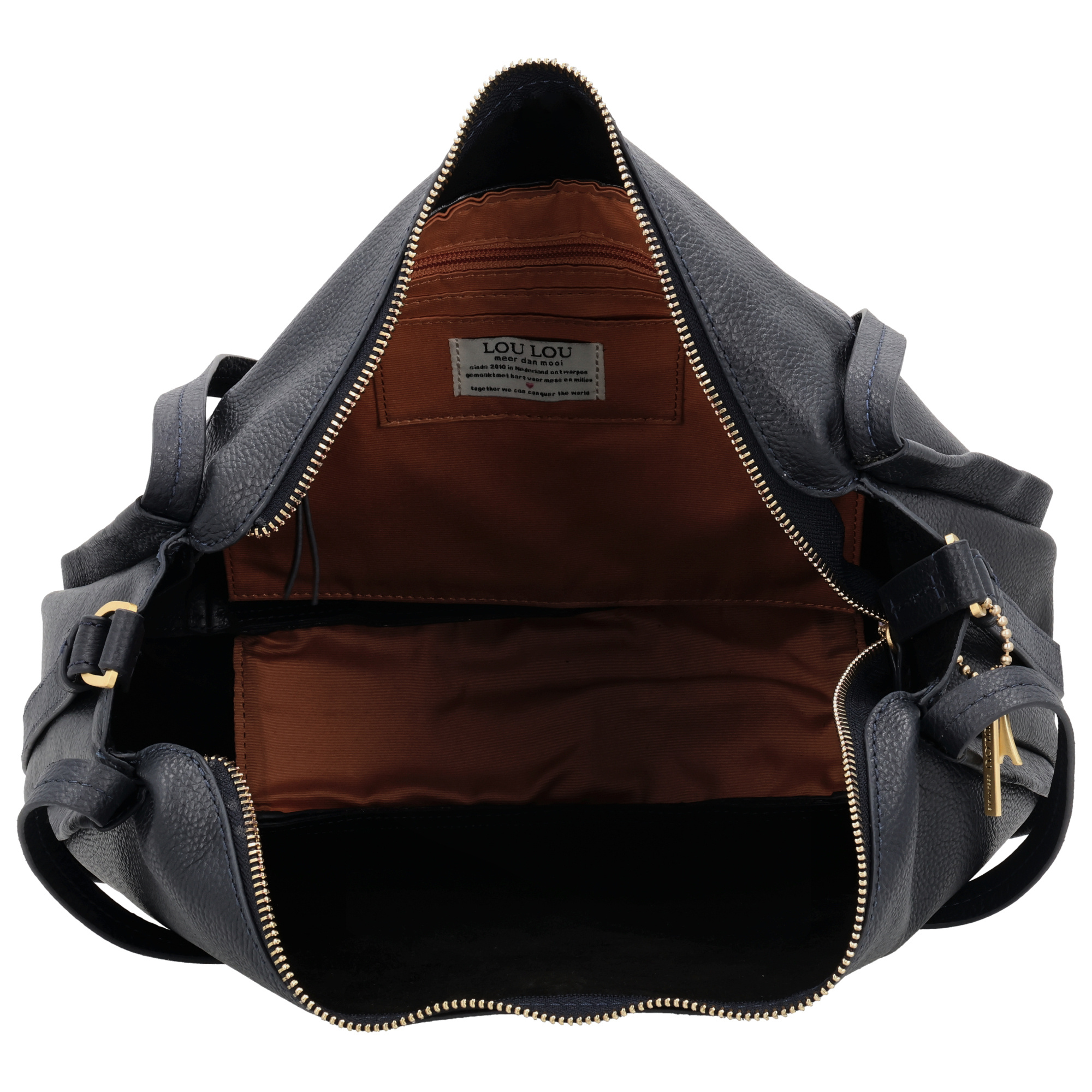 De LOU L Donkerblauw: een stijlvolle en ruime shopper in een diepe, donkerblauwe kleur. Gemaakt van soepel leer en afgewerkt met elegante goudkleurige hardware. Tijdloos, praktisch en duurzaam.