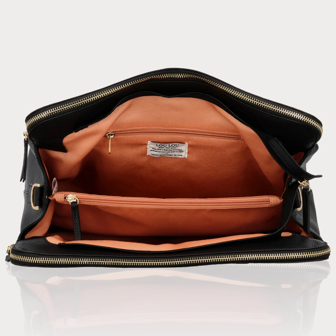 De Olivia van Lou Lou is een stijlvolle en ruime laptoptas. Dankzij de drie rits compartimenten berg je al je essentiels overzichtelijk op in deze 15 inch laptoptas. Voorzien van een padded laptop èn tablet vak. Met extra meegeleverde verstelbare lange band. De tas heeft een organiser met 6 RFID beschermde creditcard-vakjes, steekvakjes, een extra ritsvak en een penhouder. Wordt ook wel gebruikt als luiertas.