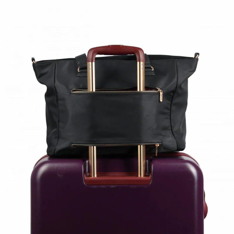 De Denise dames laptoptas shopper in zwart is jouw stijlvolle multitasker voor drukke werkdagen, citytrips en alles daartussenin. Het lichtgewicht nylon met luxe glans voelt premium aan en de matte gouden details – van ritsen tot MŌSZ-logo hanger – maken ‘m chic zonder overdreven te zijn. Praktisch én stijlvol: precies wat je nodig hebt.