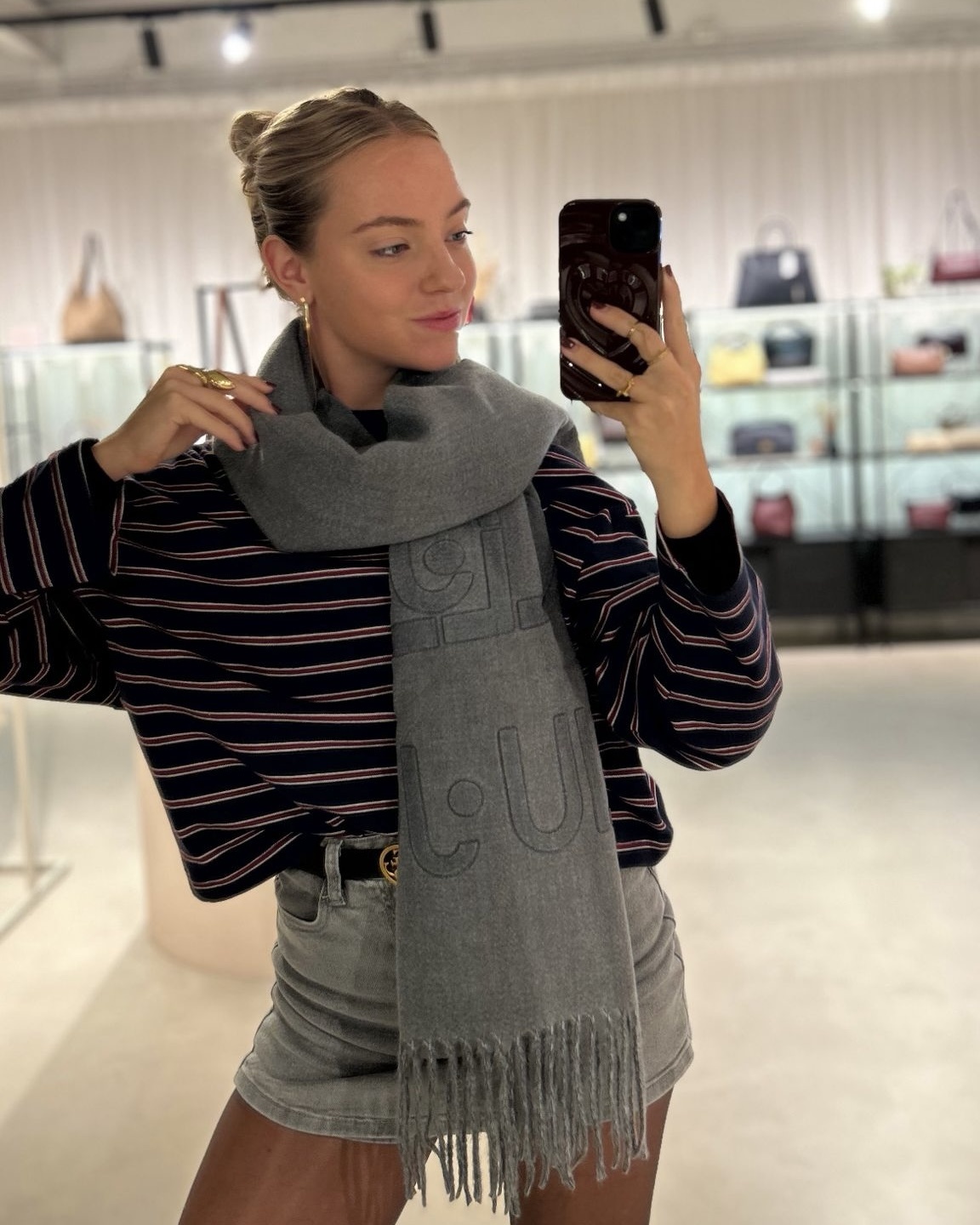Deze sjaal is van Liu Jo. Het model is gemaakt van polyester. Je draagt deze sjaal makkelijk bij verschillende outfits door de neutrale kleur en de lichte stof.