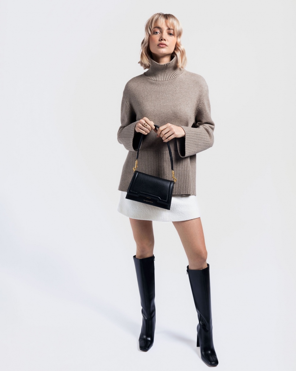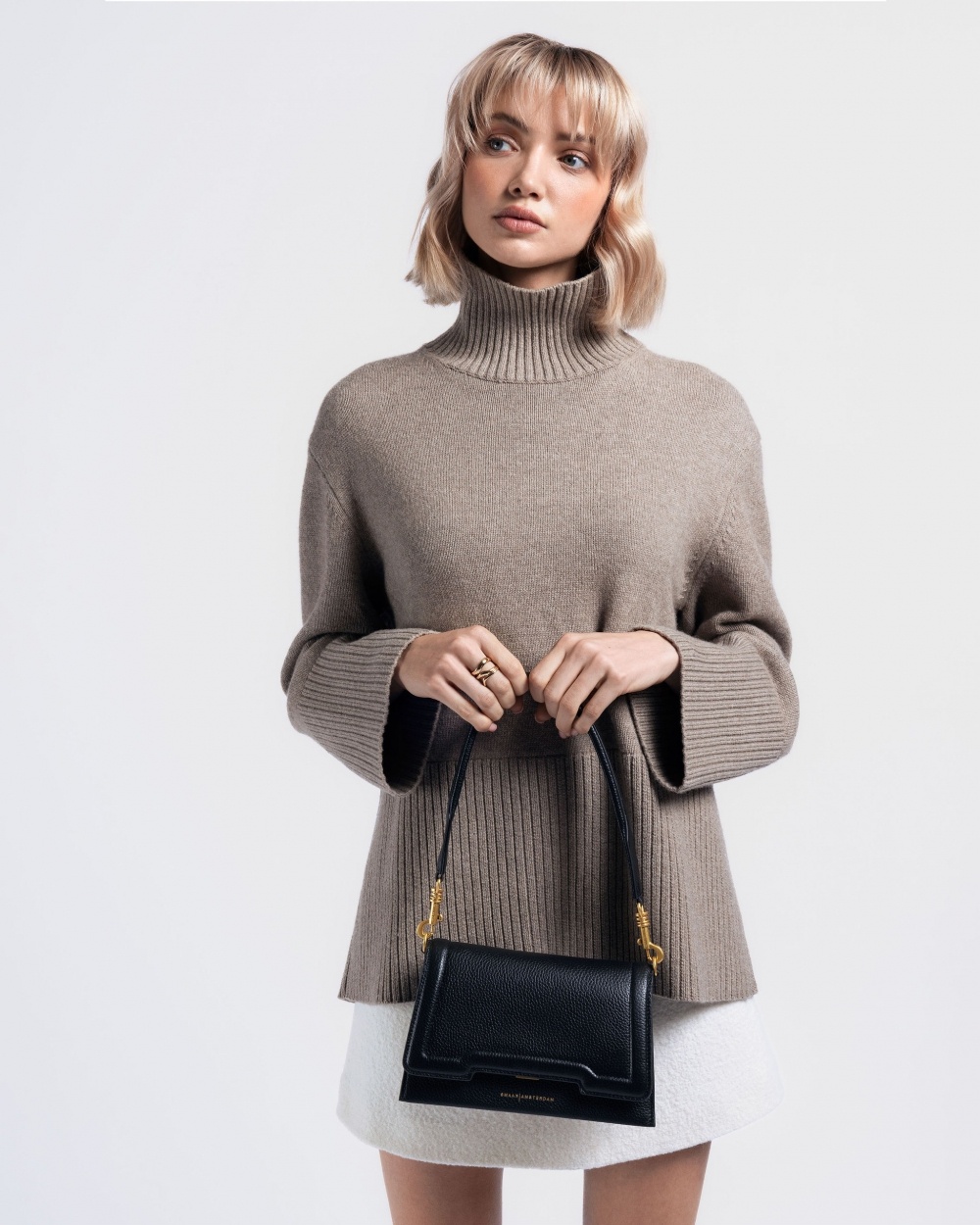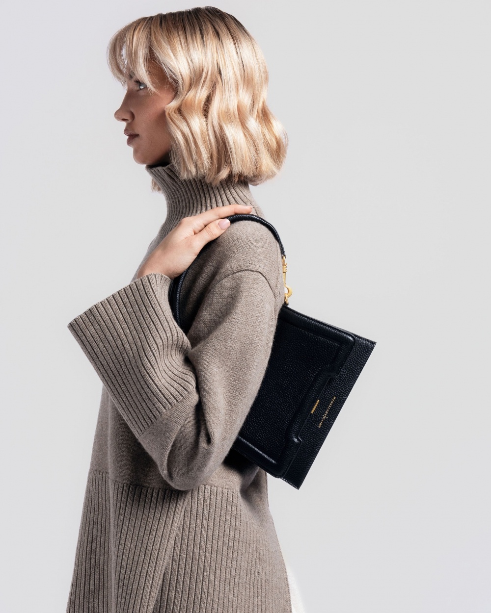 Het design heeft een fijne grip en mooie details aan de schouderband. Uniek aan het ontwerp is de indeling van compartimenten geïnspireerd op een accordeon.