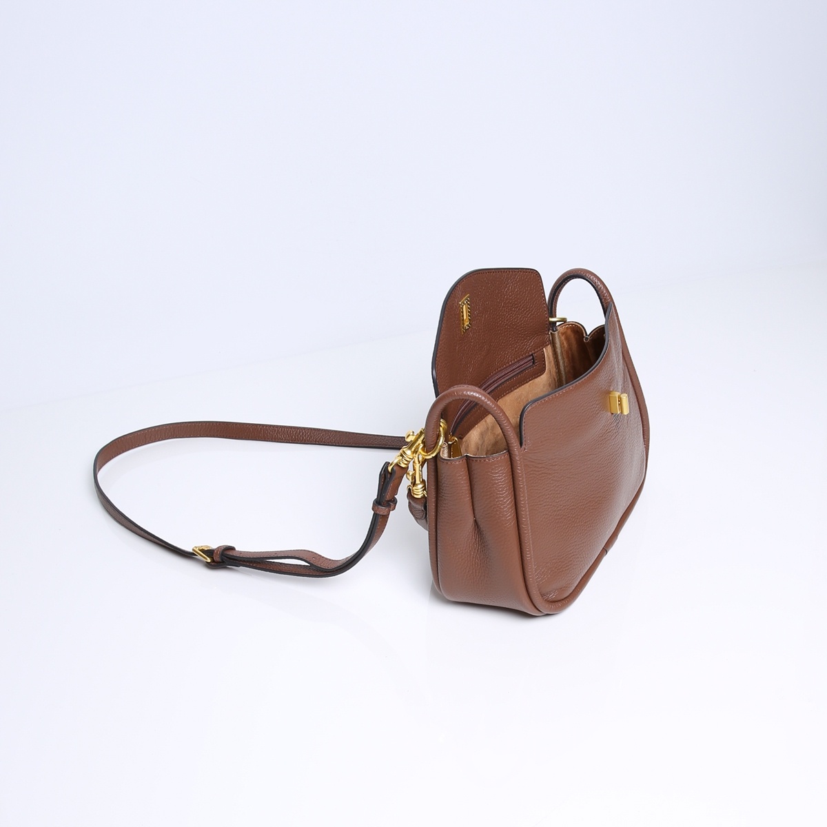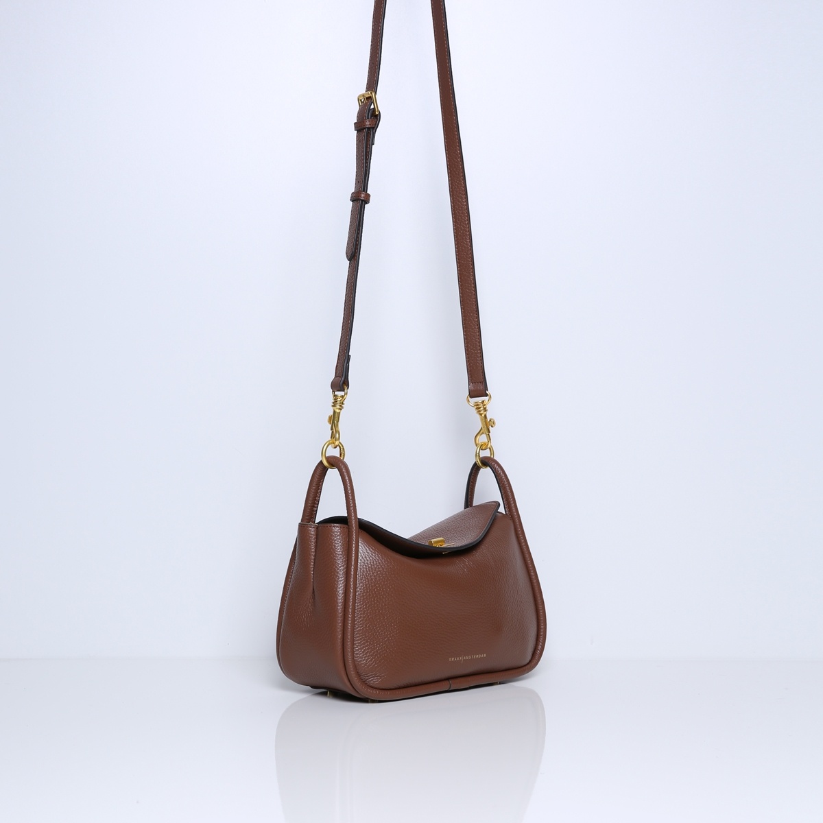 De tas is gemaakt van zacht en soepel rundleer. Beschikt over meerdere binnenvakjes en is gevoerd met suedine (viscose) materiaal. De tas komt met een afneembare korte leren schouderband van 43 cm en een lange leren crossbody band verstelbaar in lengte tot maximaal 130 cm.