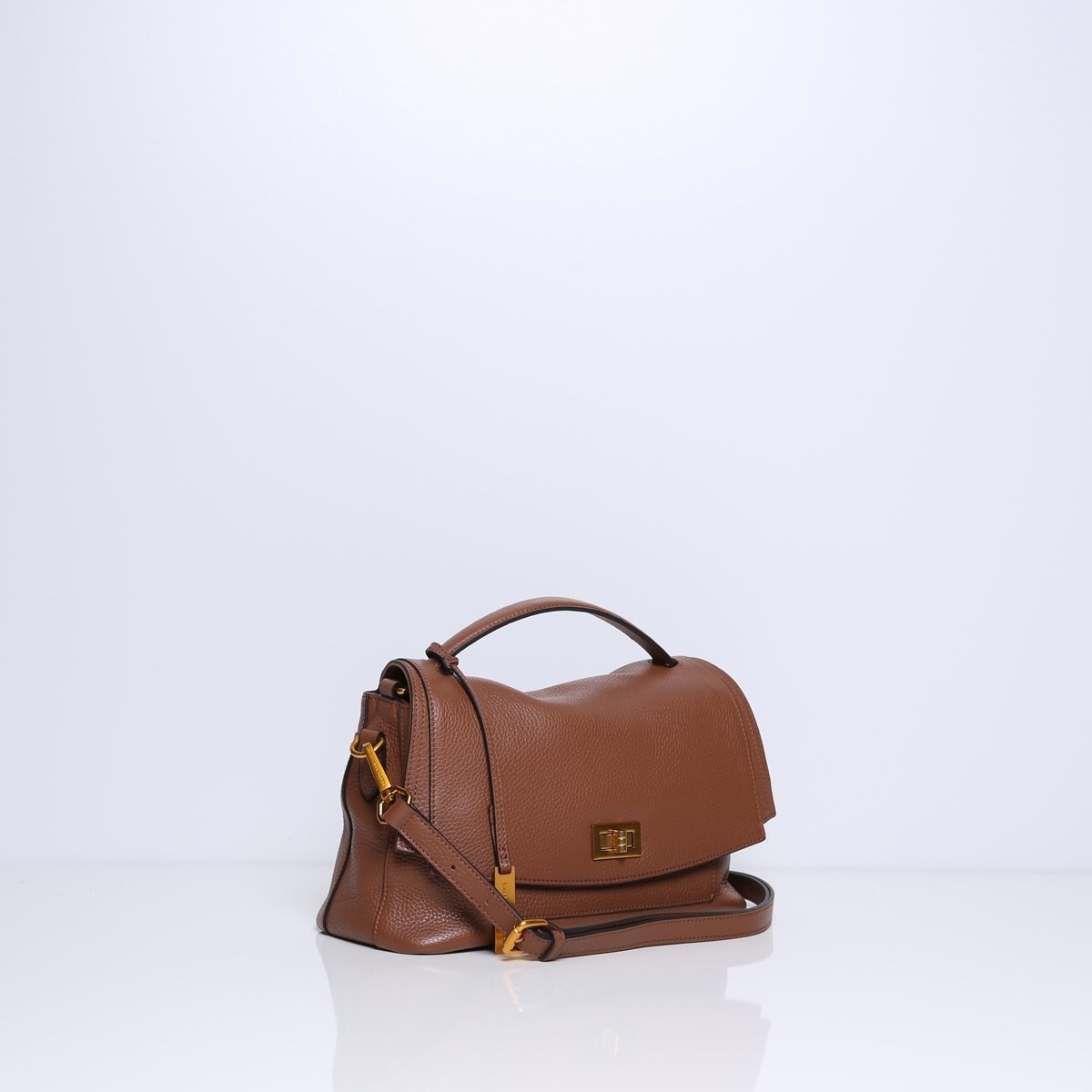 De IDA is een vrouwelijke en klassieke handtas. Met de goudkleurige draaisluiting aan de voorkant geeft de soepele vorm van de tas een elegante twist. In de IDA passen al je essentials, maar er past ook net iets meer in zoals een flesje water of een opvouwbare paraplu.