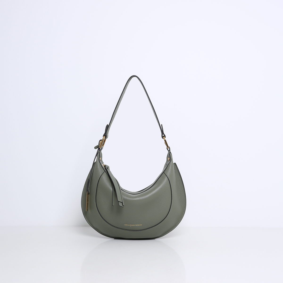De MARLON van Smaak Amsterdam is een elegante tas met een opvallende, ovale saddle bag-vorm die direct in het oog springt. De tas is prachtig afgewerkt met verfijnde stiksels en luxe goudkleurige hardware, wat zorgt voor een chique en moderne uitstraling.