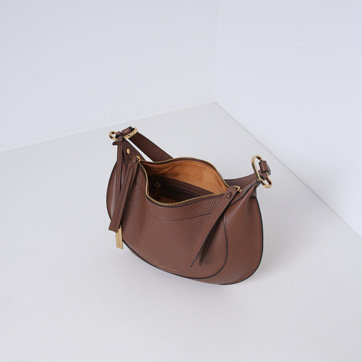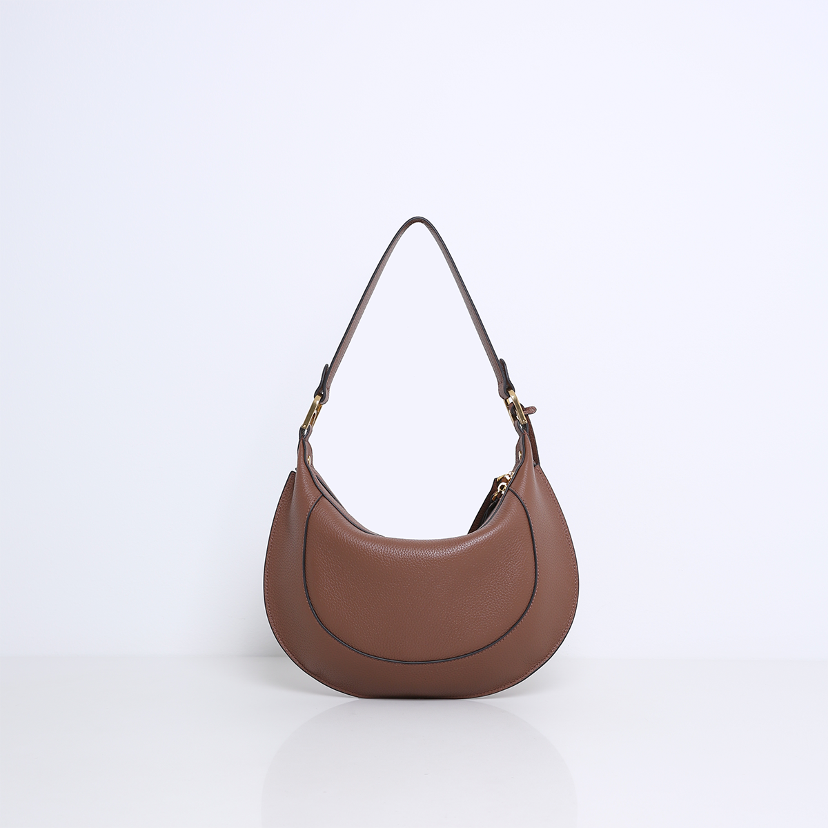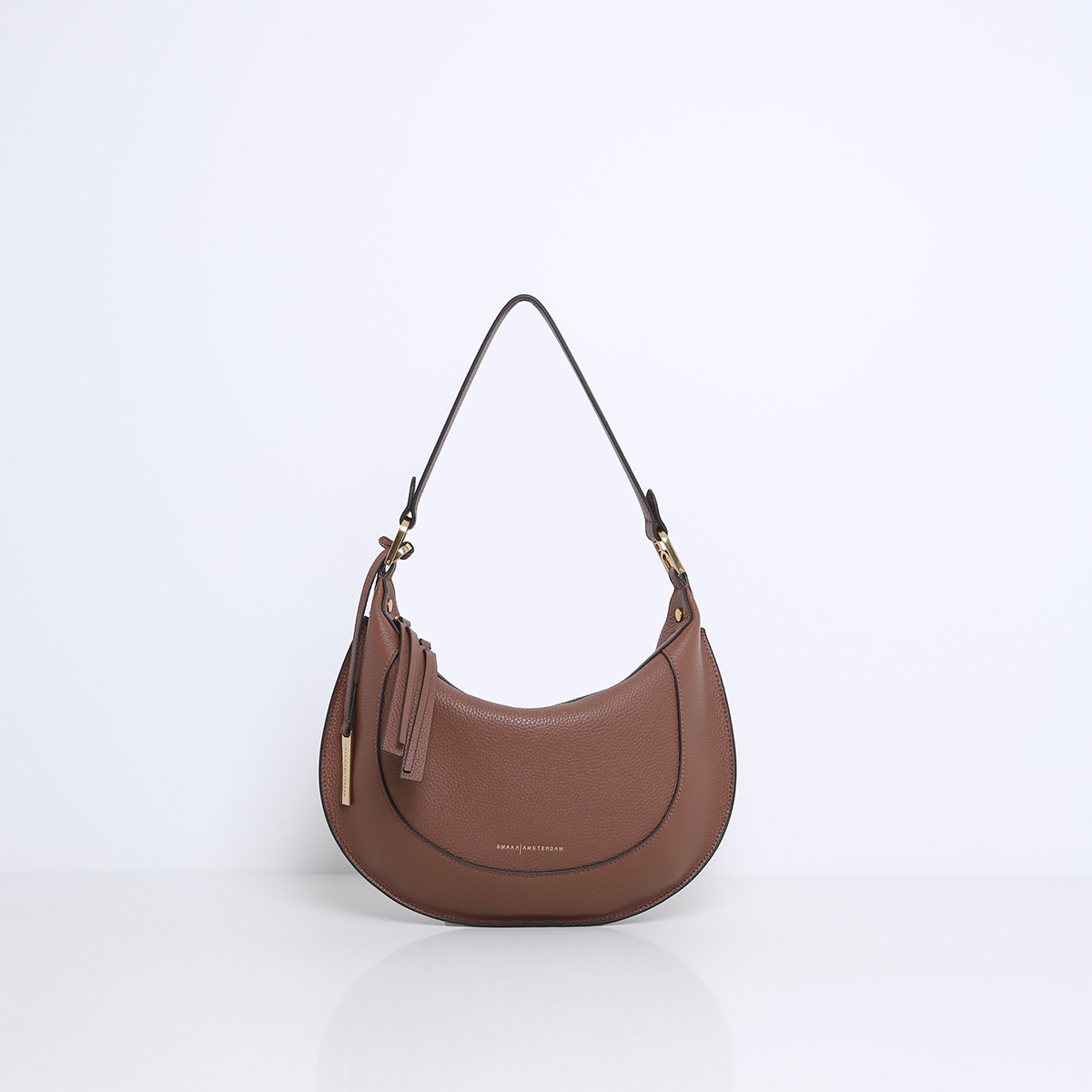 De MARLON is een elegante tas met een opvallende, ovale saddle bag-vorm die direct in het oog springt. De tas is prachtig afgewerkt met verfijnde stiksels en luxe goudkleurige hardware, wat zorgt voor een chique en moderne uitstraling.