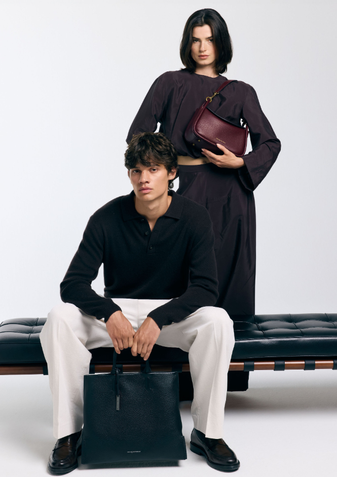 Uniek aan het design is de leren afwerking van de hengsels wat doorloopt aan de voor- en achterkant van de tas. Je kunt het korte handvat eraan bevestigen om als schoudertas te dragen of het lange hengsel om deze crossbody te kunnen dragen. De tas gaat open aan de bovenkant gesloten met een elegante externe schuifsluiting.