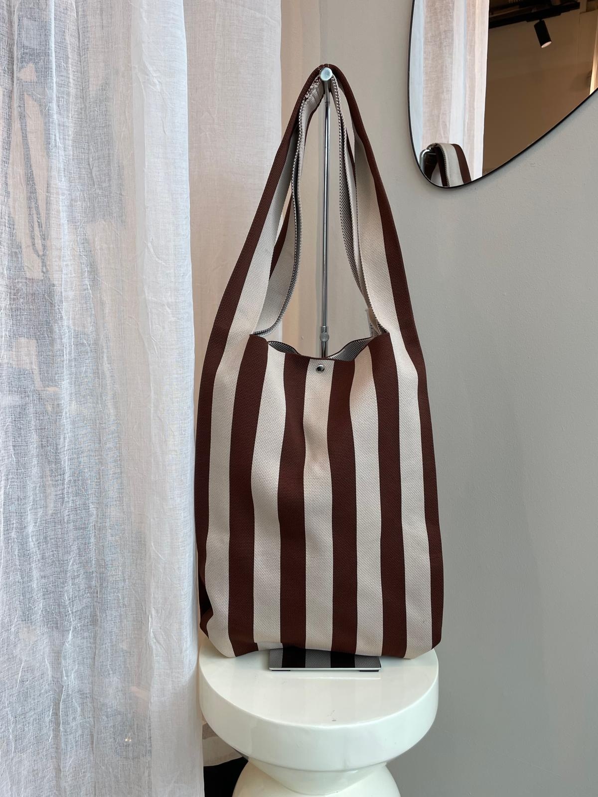 Stripe Tote Donkerbruin/Beige