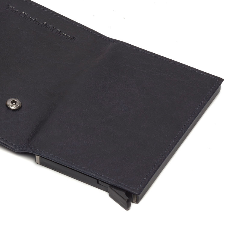 Model Mannheim is voorzien van een Antique Buff Crumbled leren hoes. Deze sluit met een omslag drukknoopsluiting en is voorzien van één insteekvak, twee pashouders en een klepvakje aan de achterkant voor kleingeld. Kortom, een veilige en praktische manier voor het meenemen en opbergen van je pasjes.