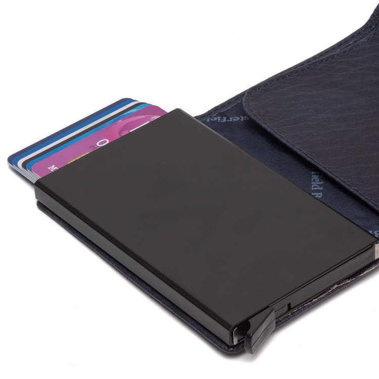 De kern is gemaakt van massief aluminium en voorzien van de nieuwste RFID bescherming. Wanneer je de kleine hendel onderaan de kaarthouder naar je toe trekt, komen de pasjes in waaiervorm uit de pasjeshouder. Zo heb je direct een duidelijk overzicht van je pasjes en hoef je niet te zoeken naar het juiste pasje.