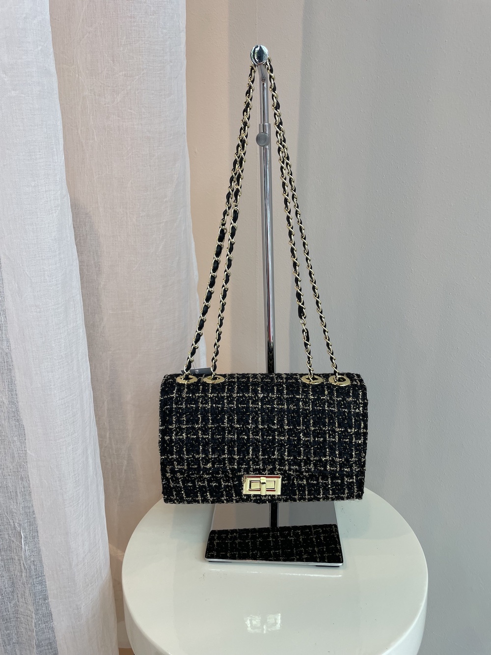 Tweed Schoudertasje Zwart/Goud