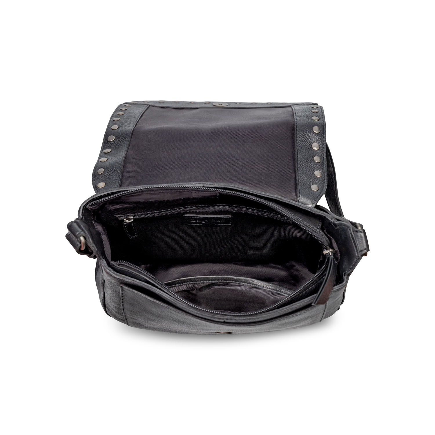 De Vardo is een stoere en stijlvolle crossbody tas met een flap en subtiele studs als detail. Het compacte formaat maakt deze tas ideaal voor dagelijks gebruik of een avondje uit. Dankzij de verstelbare schouderband draag je de tas comfortabel op jouw manier.