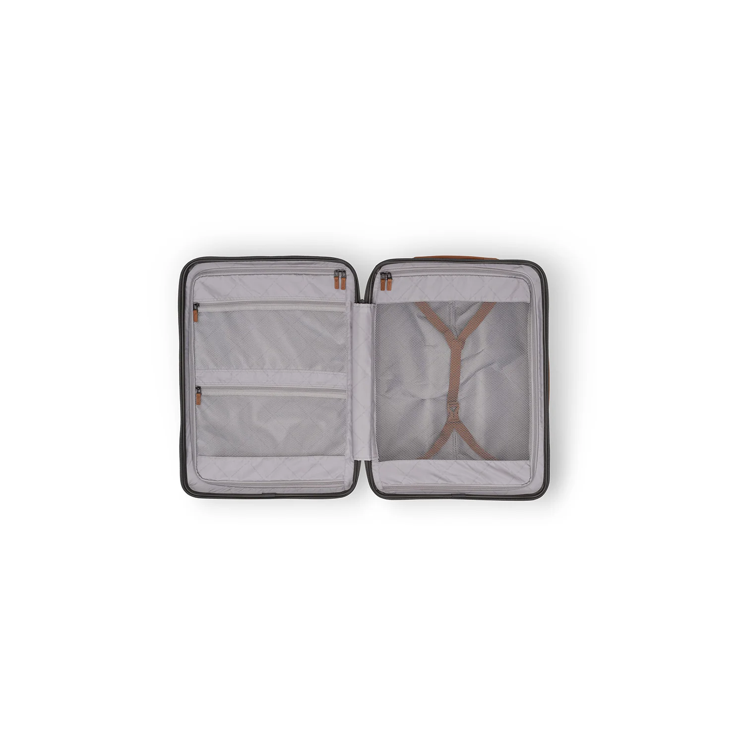 In deze koffer bevindt zich een doordachte indeling. Binnenin vind je twee grote compartimenten, beide afsluitbaar met een rits. Aan één kant is een elastische band aangebracht, zodat je kleding netjes op zijn plaats blijft tijdens het reizen. Aan de andere kant zijn in het tussenschot twee extra ritsvakken verwerkt, ideaal voor kleinere items die je snel bij de hand wilt hebben of gescheiden wilt houden van je kleding of toiletartikelen. Onder deze ritsvakken bevindt zich nog een groot vak voor het overzichtelijk opbergen van overige spullen.